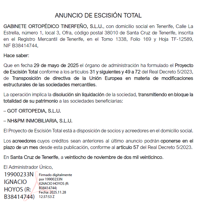 Anuncio de Escisión Total