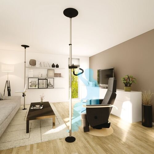 Un soporte que se coloca en cualquier posición y en cualquier ángulo, para facilitar el ponerse de pie y tirar de uno mismo. Soporte de aluminio con superficie suave y antideslizante. Montado a la altura adecuada, también puede ser utilizado como un cómodo reposacabezas. Dimensiones aprox. 32 x 32 cm. Diámetro del tubo 22 mm.