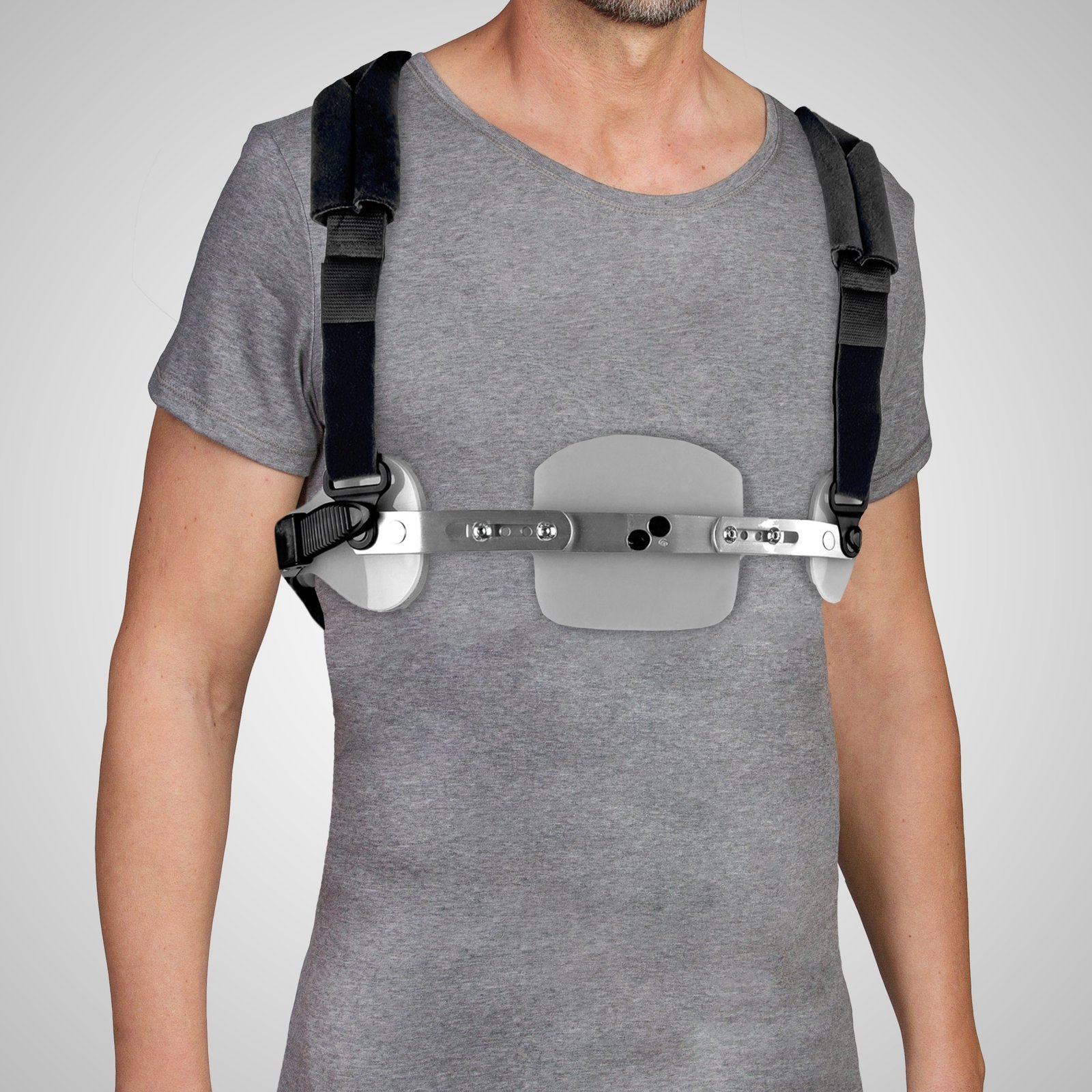 Ortesis compuesta por una estructura metálica almohadillada diseñada para reducir o corregir la deformidad de Pectus Carinatum o tórax en quilla.Estructura metálica regulable